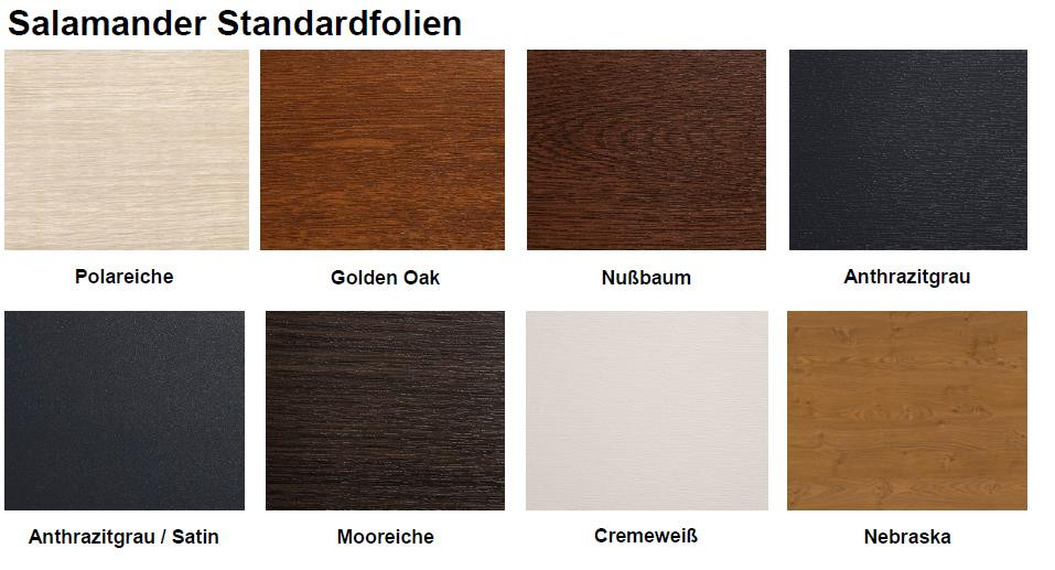 SIe sind in der breiten Farbpalette von glatten und holzimitierenden Farben erhältlich